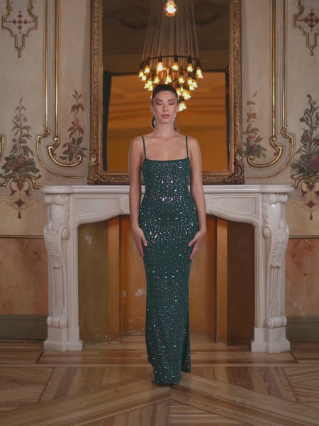 Long strapless dress with tulle fabric and mirror effect appliqué detail that makes it unique and super special. Also, if you have a special event this season it is ideal!!